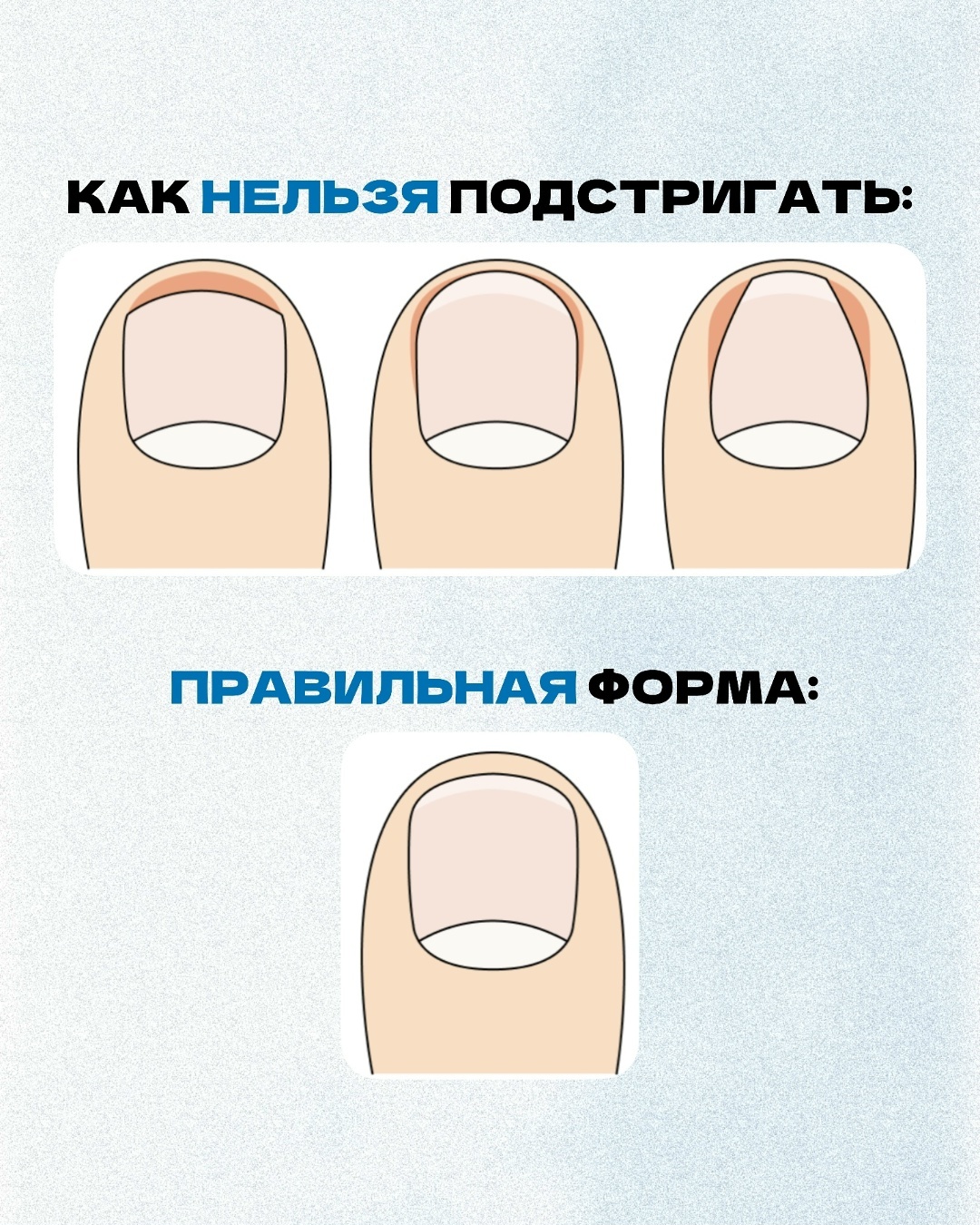️Не следует срезать ноготь слишком коротко, вплотную к ногтевому валику.